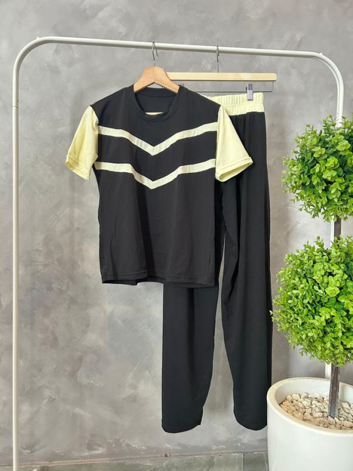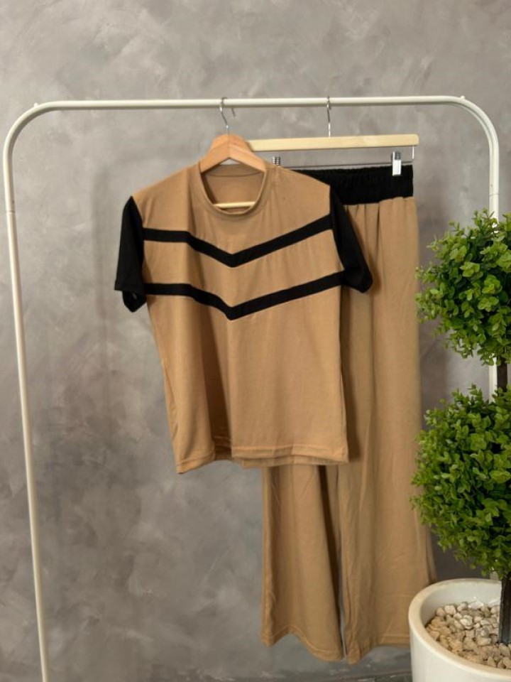 Pantalón: de pierna recta y pretina elástica en combinación a los tonos de la blusa, lo que le da un contraste agradable y cómodo.