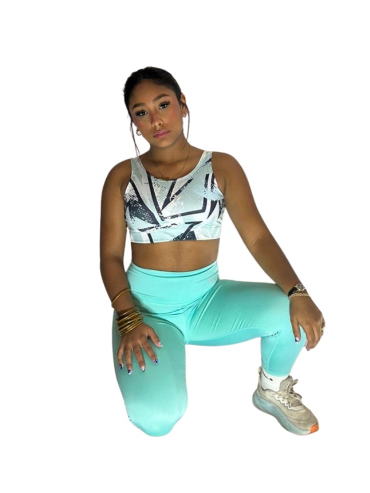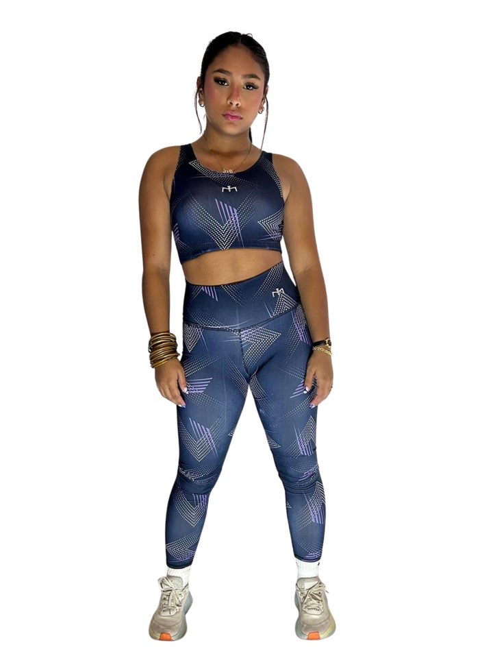 Conjunto deportivo con tela elastica y sport-bra de soporte comodo, diseñado para compańarte conlibertad de movimiento y seguiridad