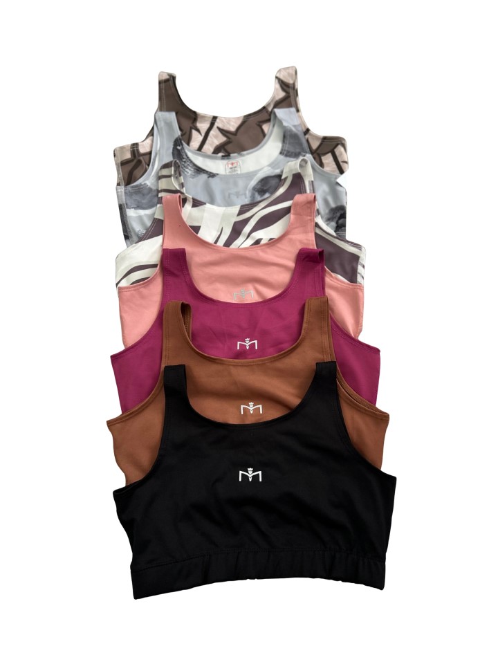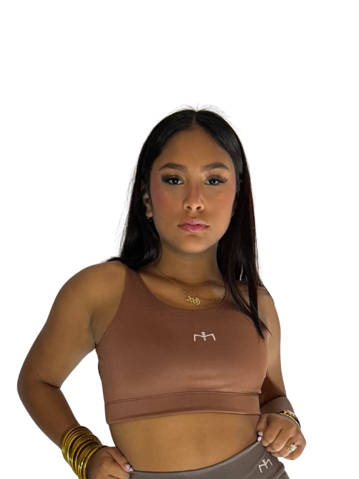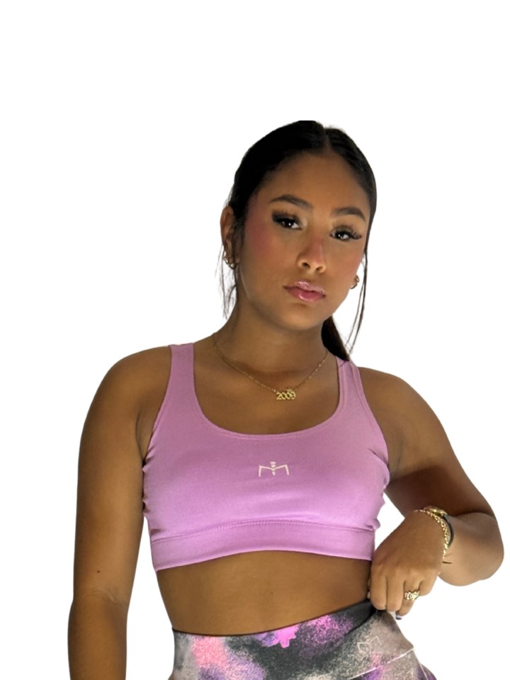 Sport bra corto de alta sujetación, con tirantes anchos, escote redondeado,cómodo y moderno.